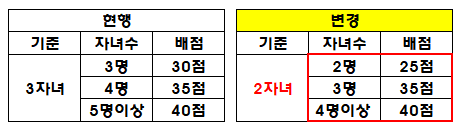 기준이 완화되면서 자녀수에 따른 배점이 달라지게 되었습니다.